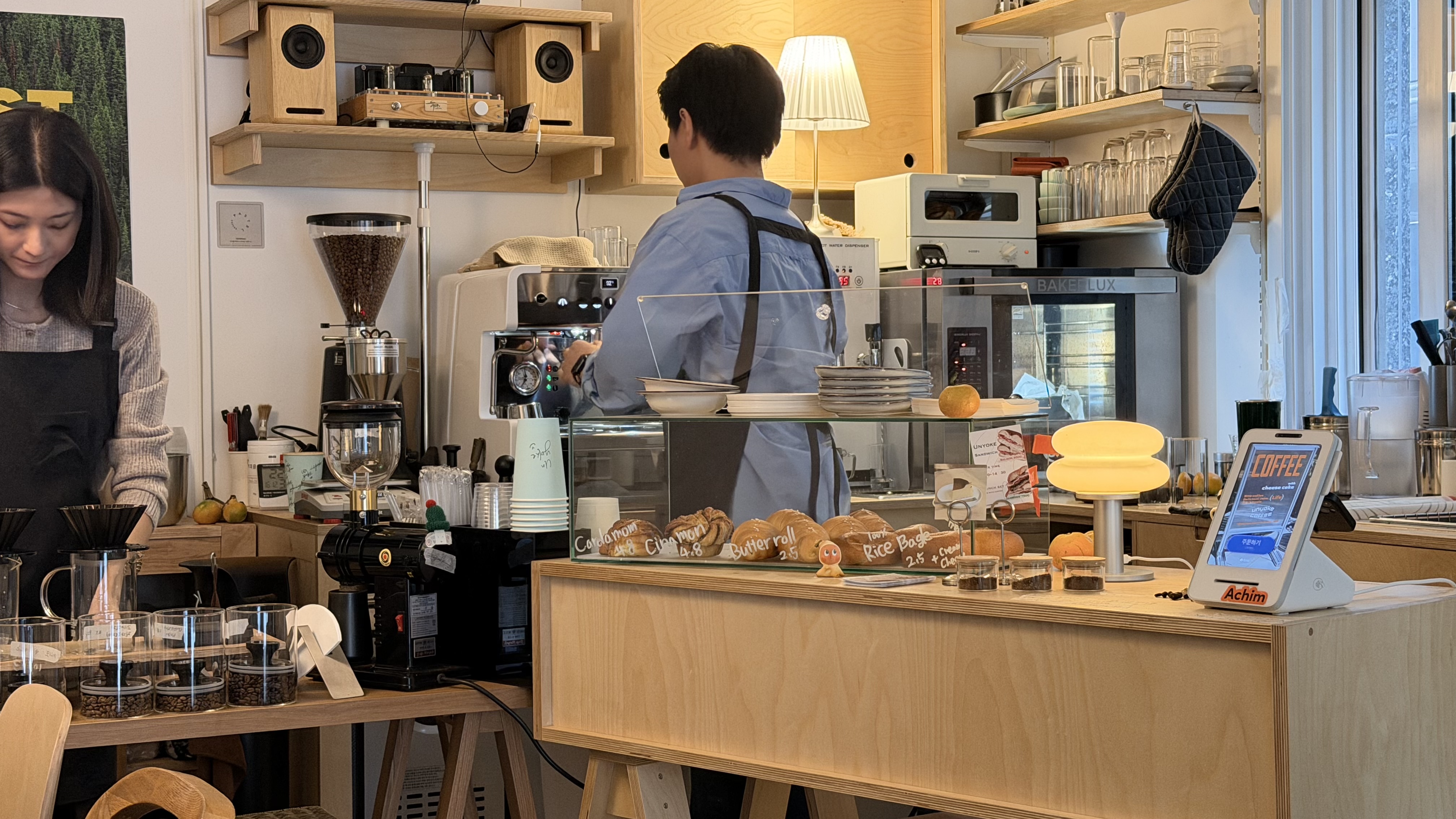 사장님 두 분이 차분한 손놀림으로 커피를 준비하는 모습이 인상적이었습니다.