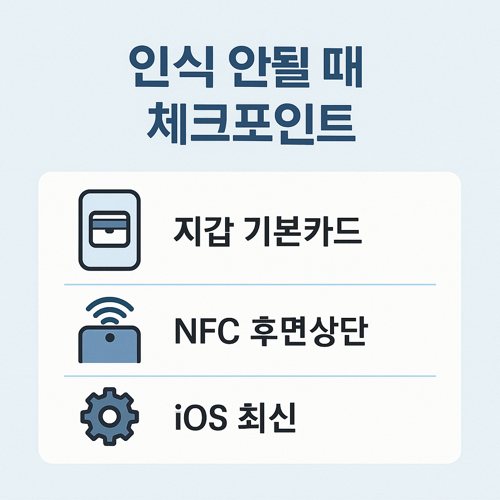아이폰의 지갑(Wallet) 앱에 교통카드를 등록했는데 버스 단말기에서 반응이 없다면, 기본 카드 설정이 되어 있는지 먼저 확인해야 합니다. NFC 감지 위치(아이폰 후면 상단)를 정확히 맞대는 것도 중요합니다. 또한 iOS 버전이 최신인지, 티머니 앱과 애플페이가 모두 최신 버전으로 유지되는지도 체크하세요.
