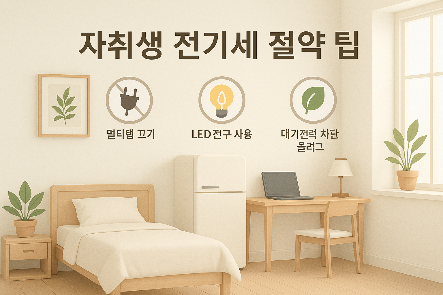 자취방은 작지만, 냉장고, 에어컨, 세탁기 등 주요 전자기기는 그대로 사용되기 때문에 전기 요금은 줄지 않고 오히려 누진제로 인해 더 나올 수 있습니다.
