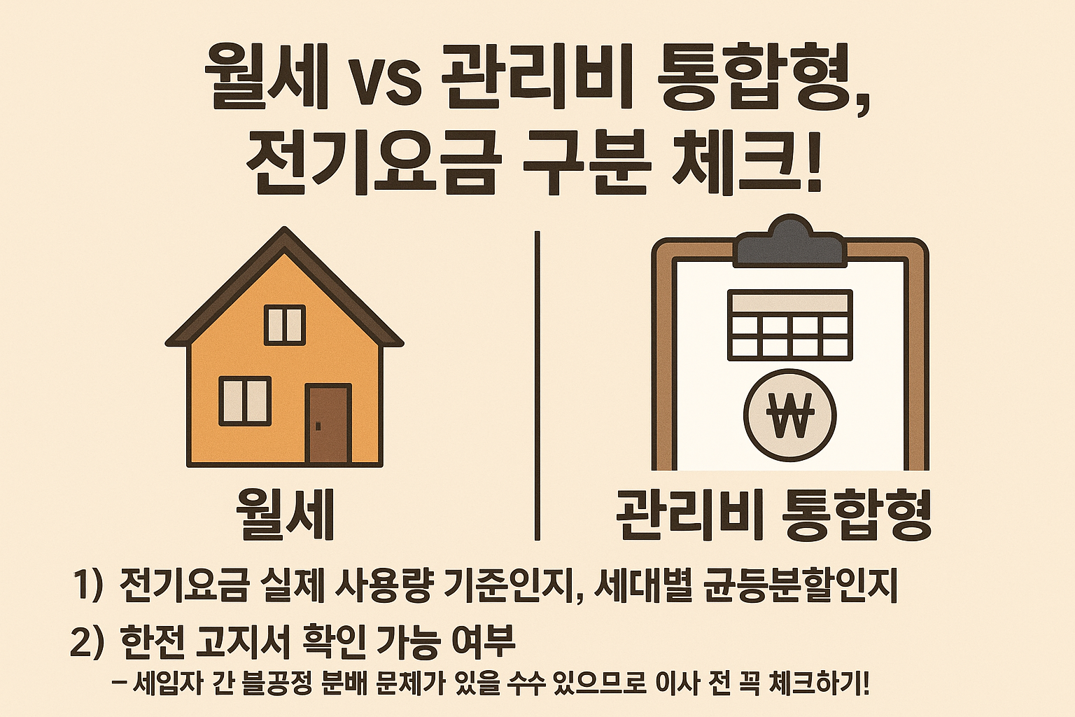 4. 월세 vs 관리비 통합형, 전기요금 구분 체크!