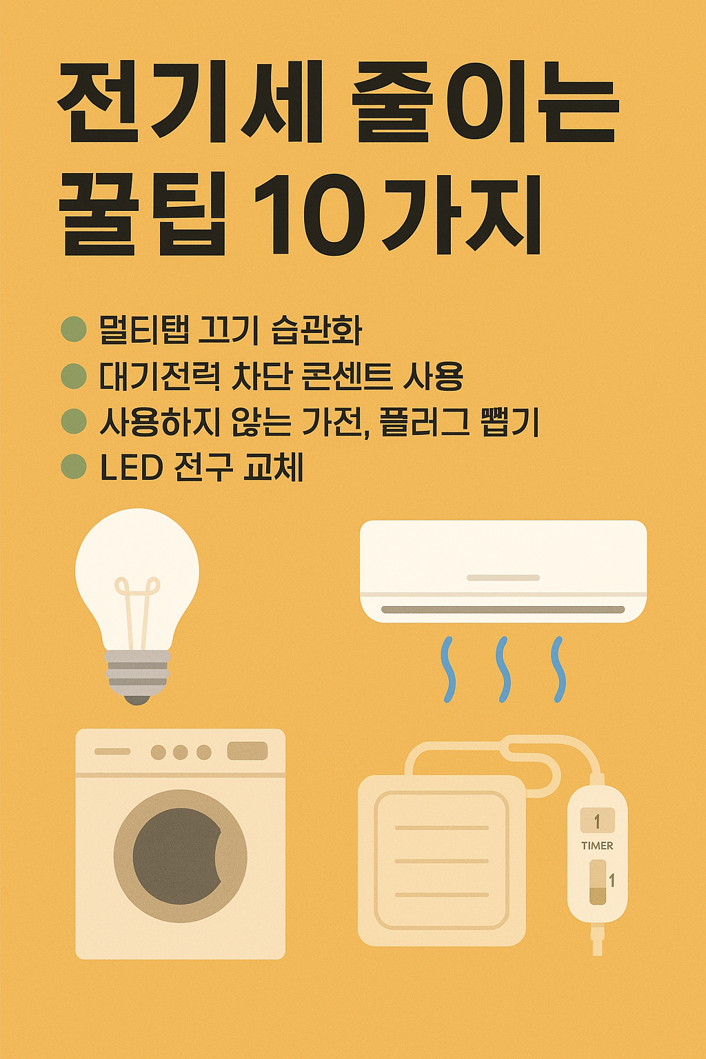 전기세는 단순히 절약하는 걸 넘어, 에너지 소비를 줄이는 생활 방식의 전환이기도 합니다. 오늘 알려드린 10가지 팁 중, 한 가지만 실천해도 다음 달 고지서가 달라질 수 있어요. 한꺼번에 다 바꾸기 어렵다면 하나씩 실천하며 습관화해보세요!
